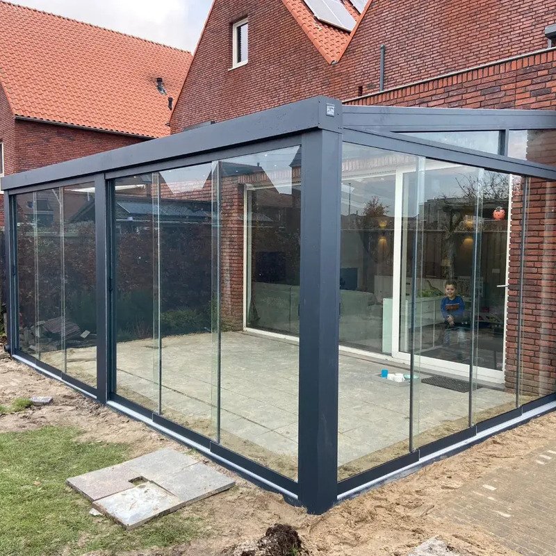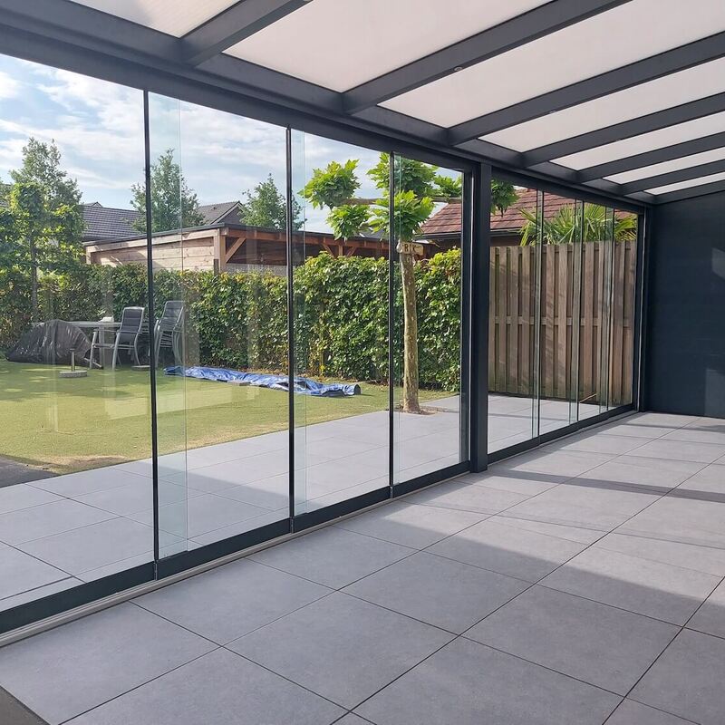 De Highline veranda is eenvoudig uit te breiden om uw comfort nog verder te vergroten. Het is mogelijk om van uw veranda een complete tuinkamer te maken. Een tuinkamer heeft als extra’s 2 zijwanden en aan de voorzijde glazen schuifwanden.